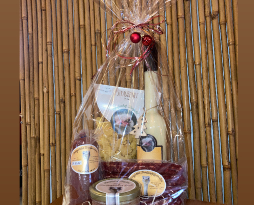 Gern stellen wir Ihnen auch einen ganz individuellen Präsentkorb mit Produkten aus unserem Hofladen zusammen.