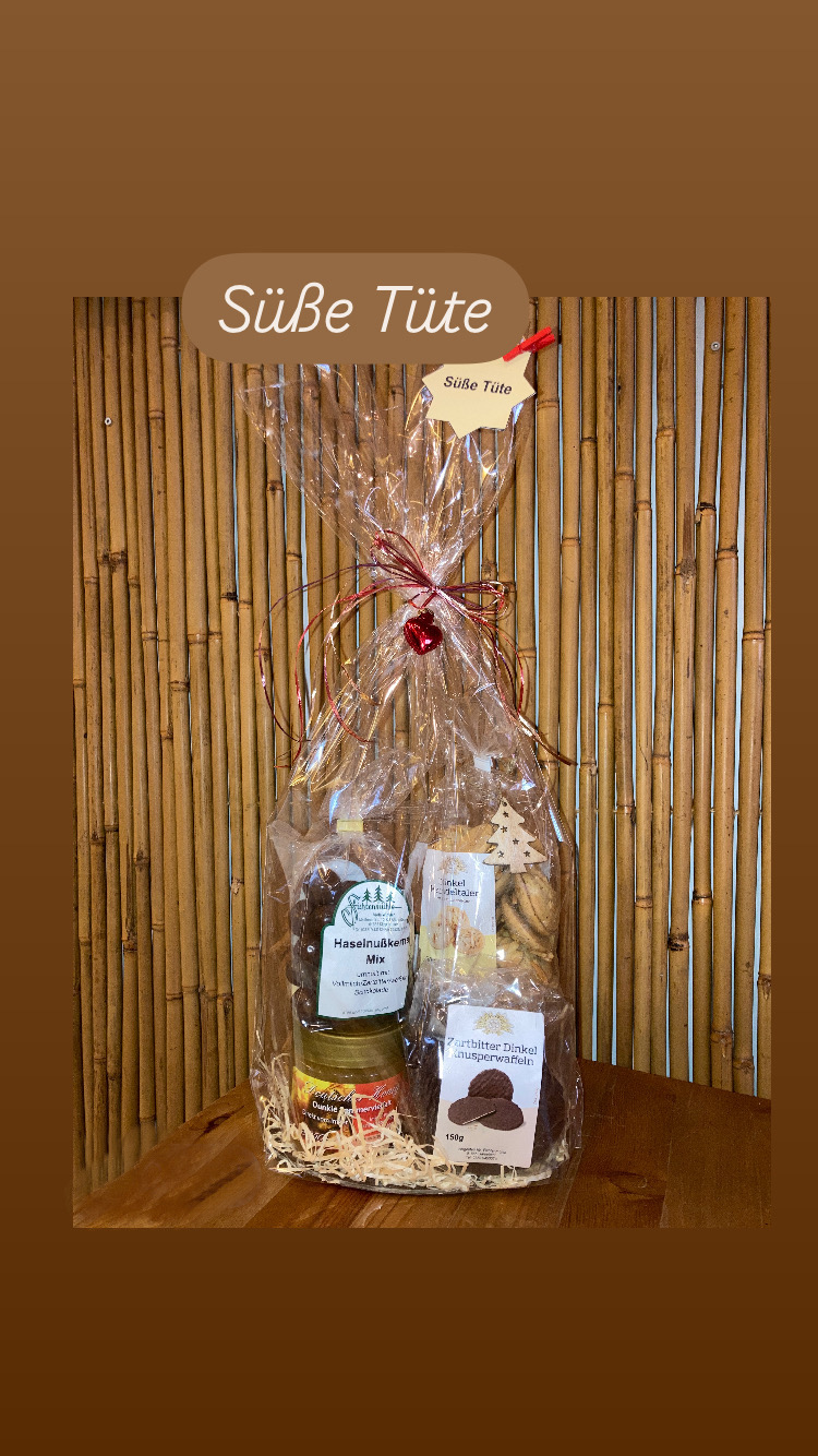 Es gibt eine große Auswahl an Präsentkörben, wie auf den Bildern zu sehen. Wenn Sie die Bilder anklicken, sehen Sie die Beschreibung zur Tüte und den Preis.